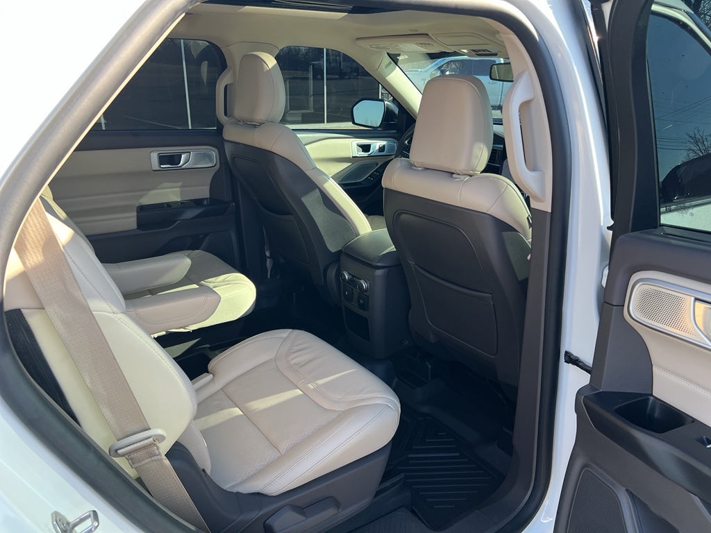 Keep your hands warm all winter with a heated steering wheel in it . This Ford Explorer offers Apple CarPlay for seamless connectivity. This model features a hands-free Bluetooth® phone system. The leather seats in it are a must for buyers looking for comfort, durability, and style. Never get into a cold vehicle again with the remote start feature on it. See what's behind you with the back up camera on this 1/2 ton suv. This 1/2 ton suv comes equipped with Android Auto for seamless smartphone integration on the road. This vehicle has auto-adjust speed for safe following. The installed navigation system will keep you on the right path. This unit has a V6, 3.0L high output engine. Load groceries and much more with ease into this vehicle thanks to the power liftgate. This unit shines with clean polished lines coated with an elegant white finish. Maintaining a stable interior temperature in this unit is easy with the climate control system.